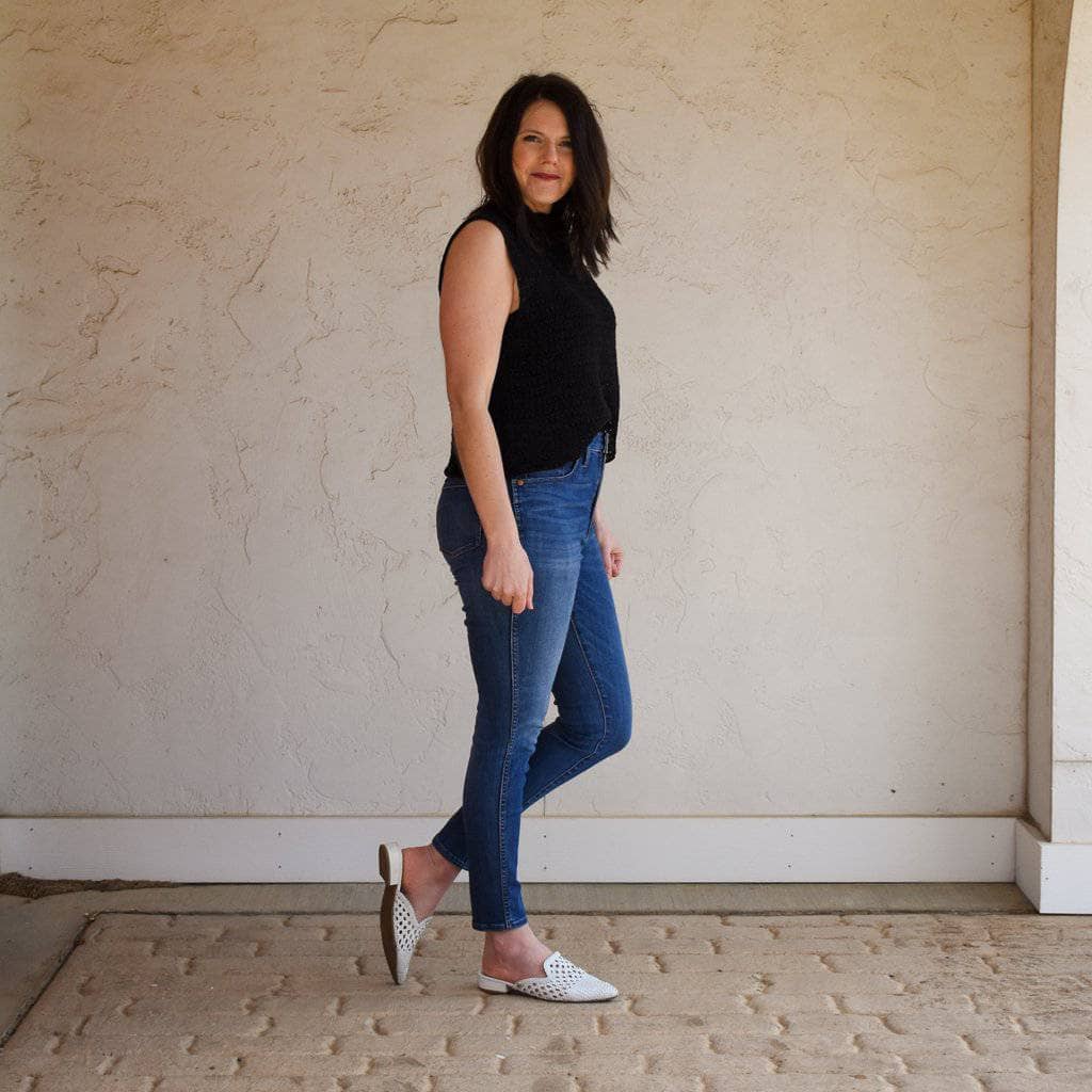 The Black to the Basics tank top is an easy crochet project that assembles with basic crochet stitches. The tank top is constructed by crocheting 2 panels with simple increases for shaping. The luxurious Darn Good Yarn sport weight linen yarn used in the design of the pattern flaunts the tank top’s daisy stitches flawlessly.