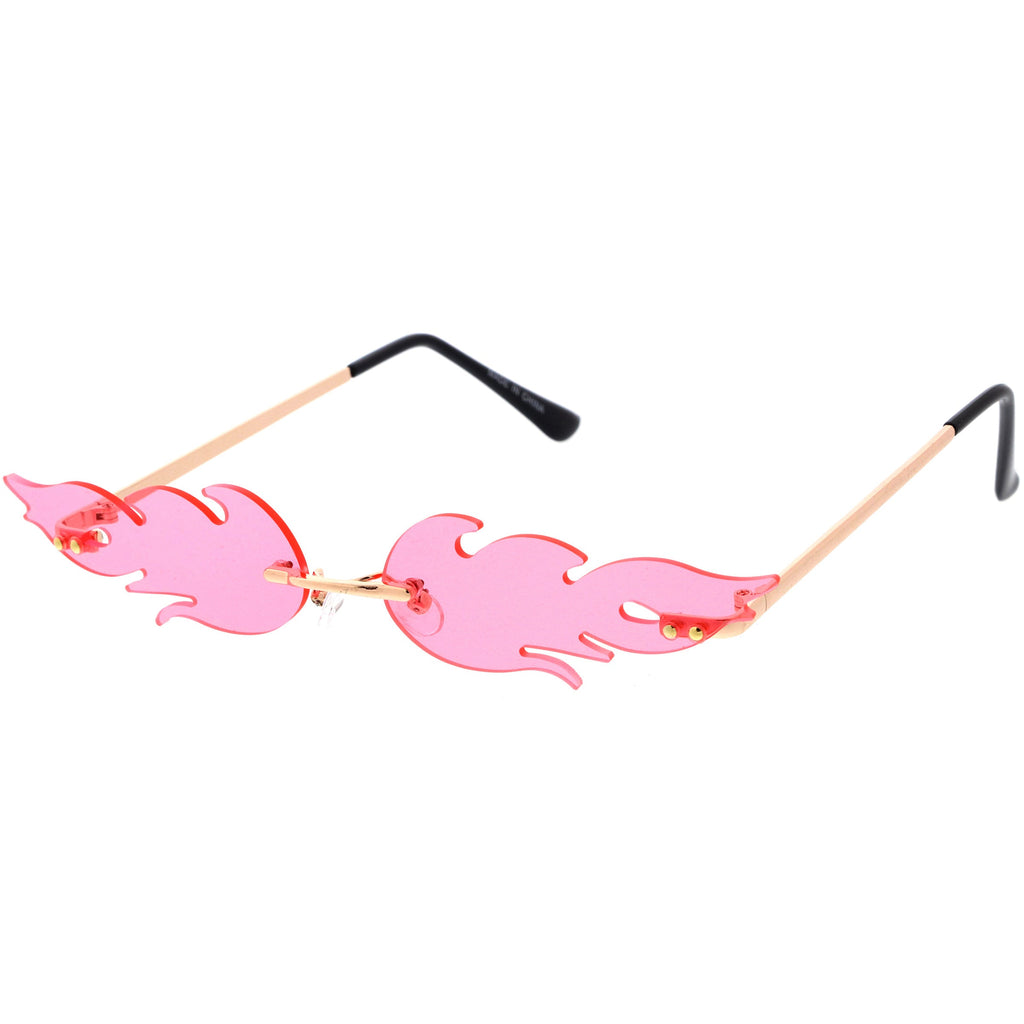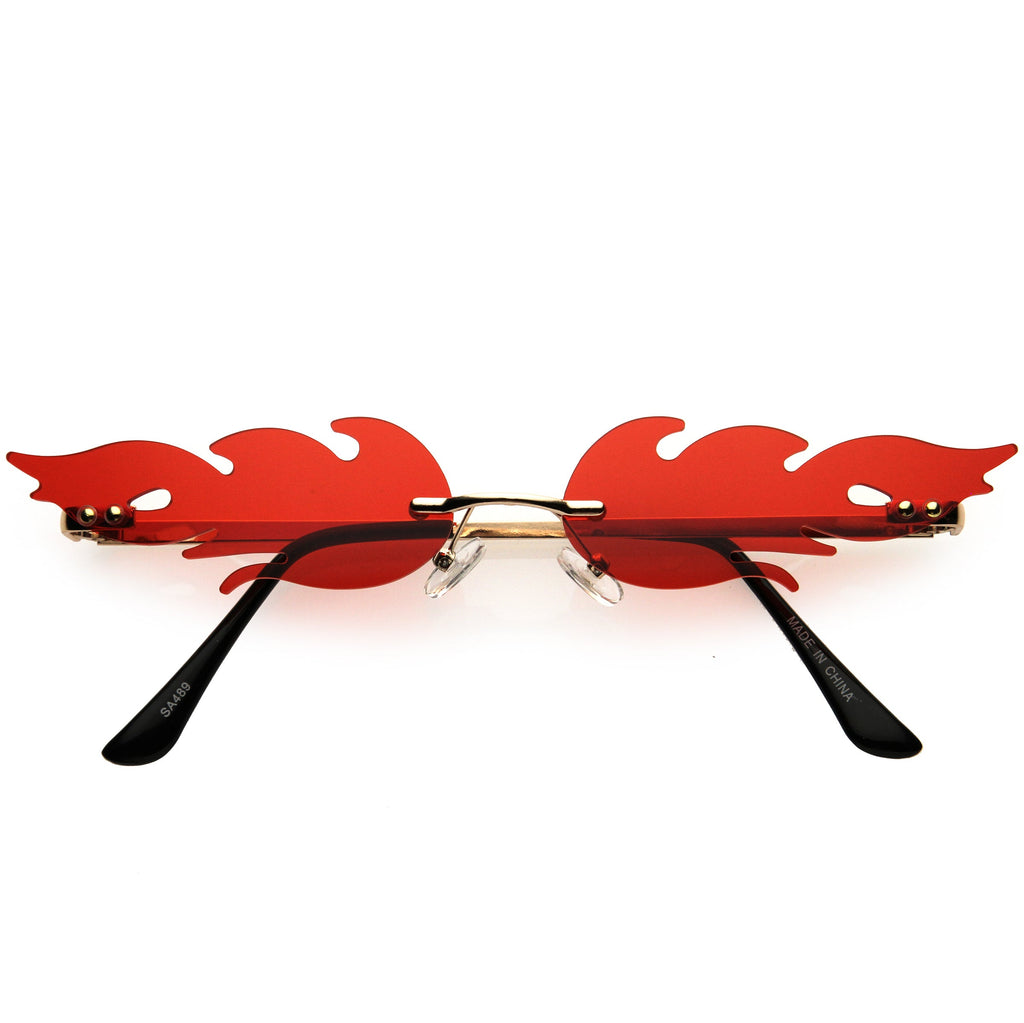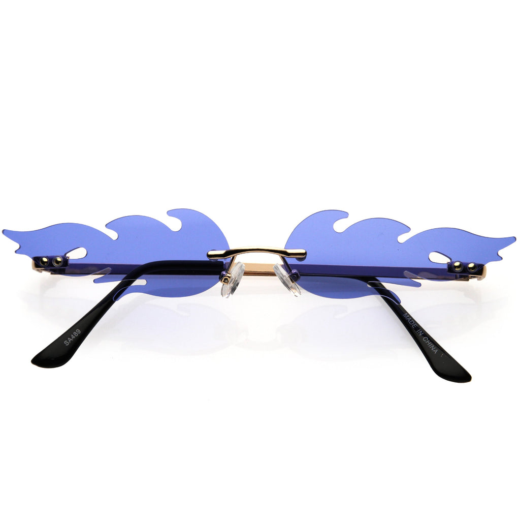 Bold Fire Flaming Shape Color Tinted Lens Rimless Flames Sunglasses D080