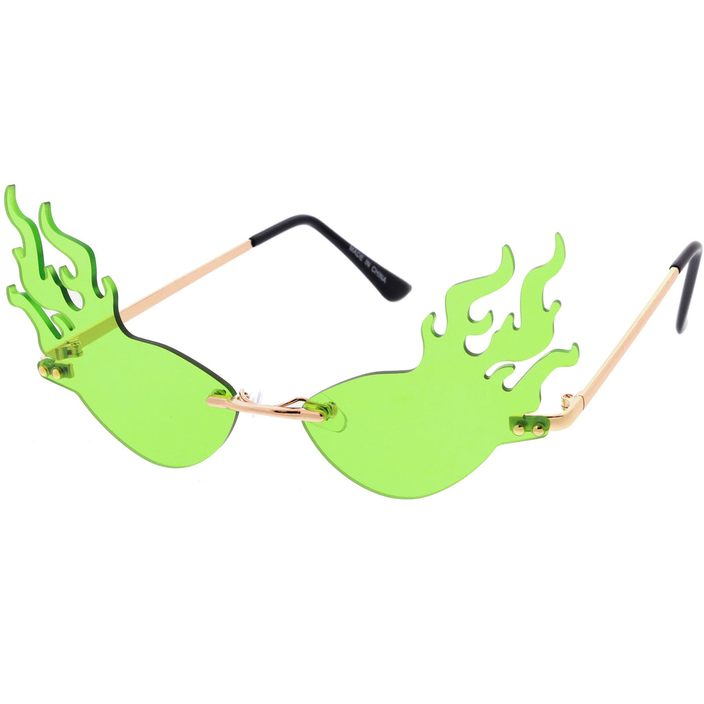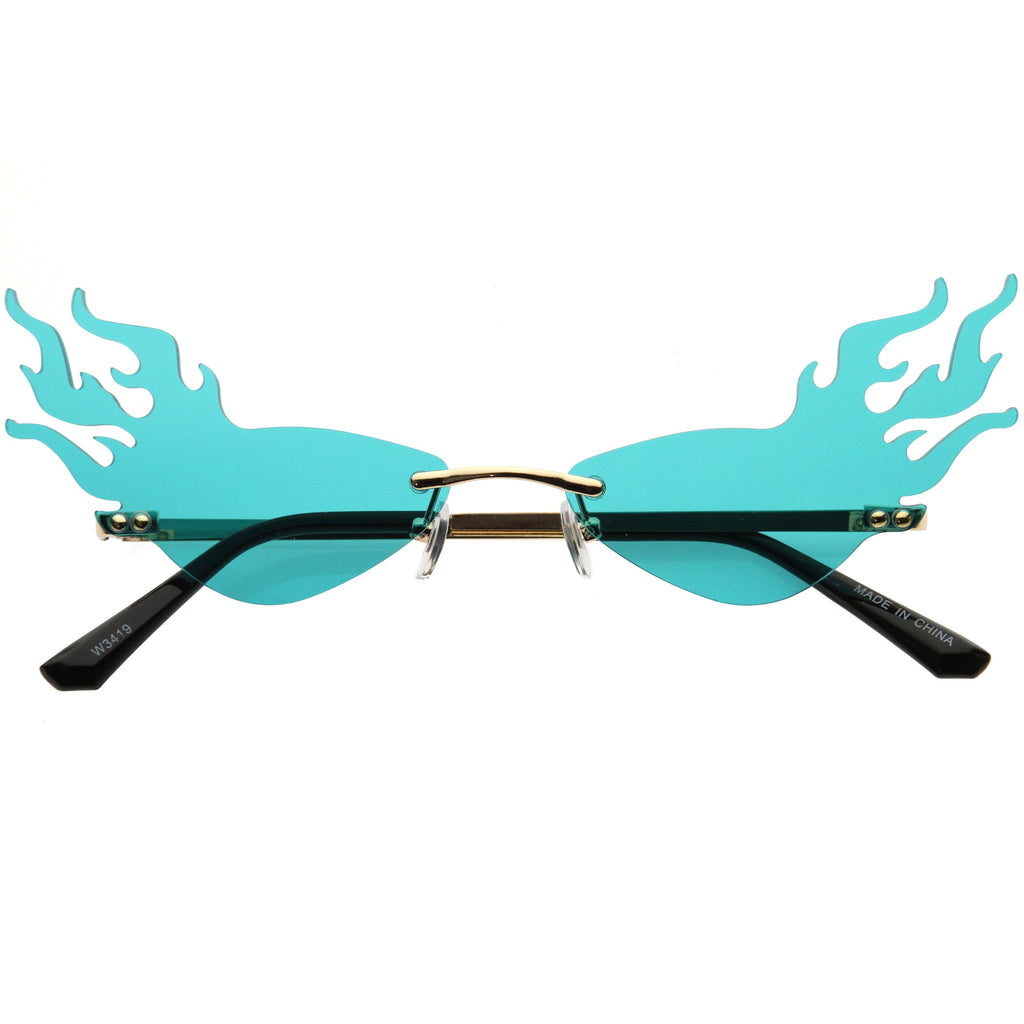 Flaming Fire Color Tinted Lens Oval Rimless Flames Sunglasses D073