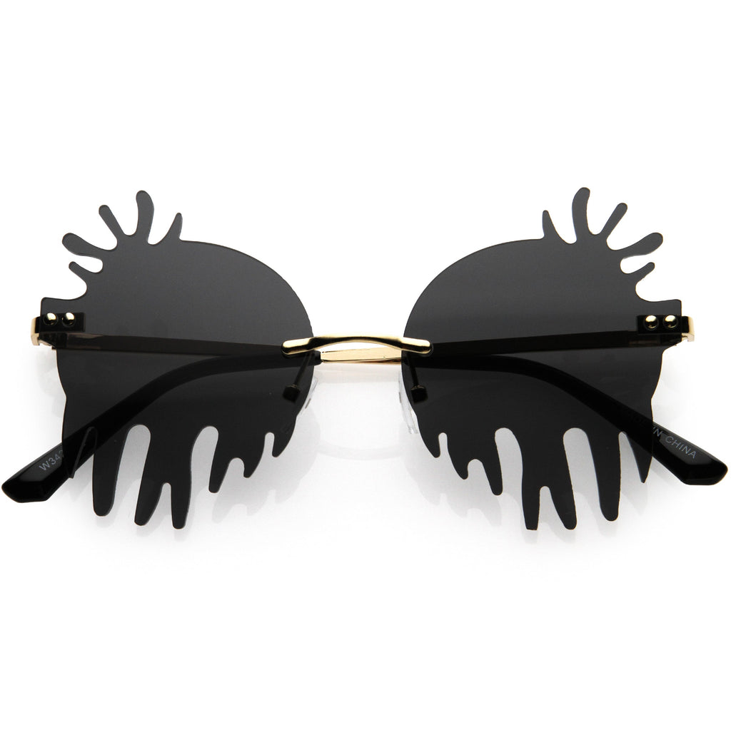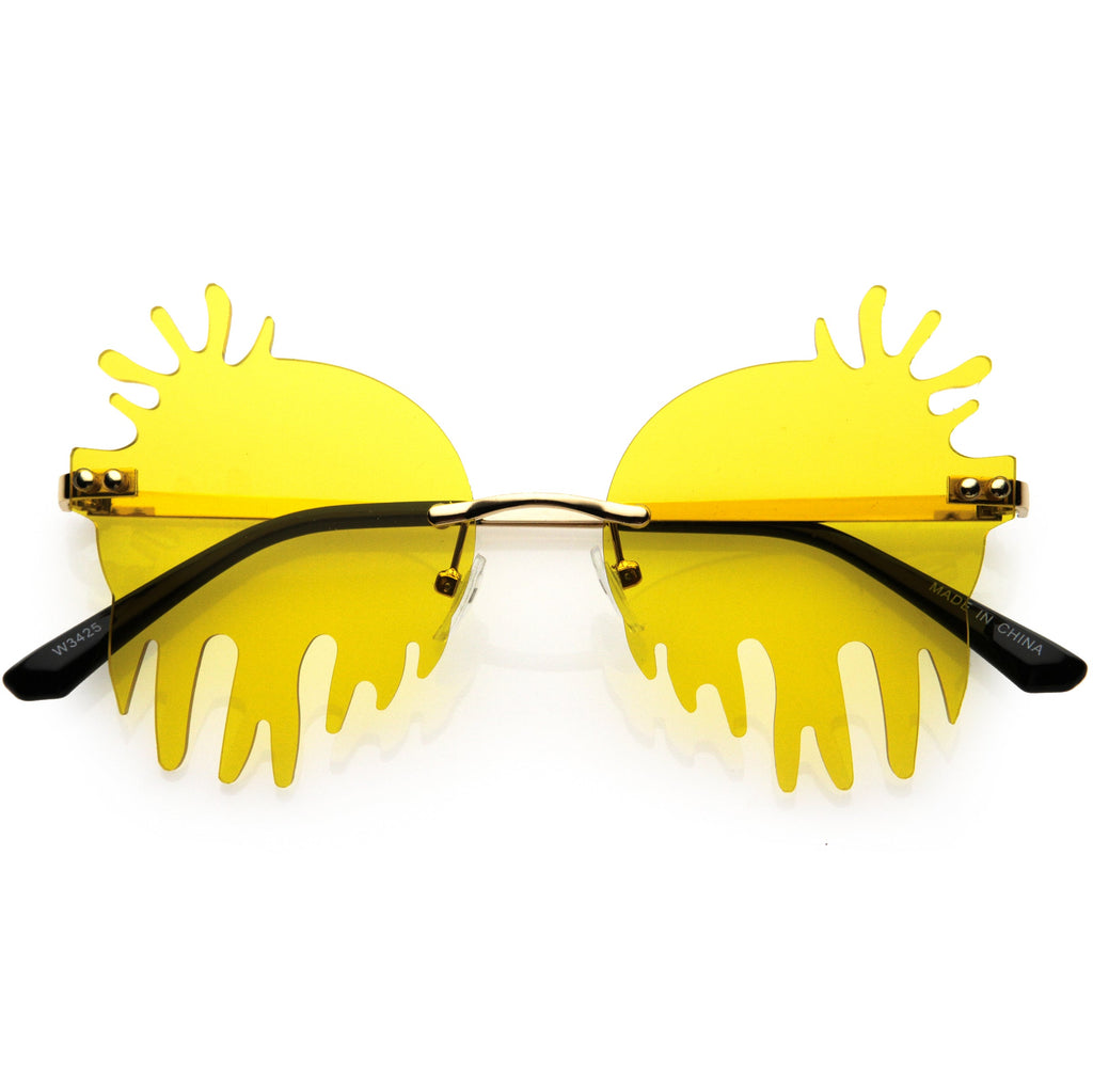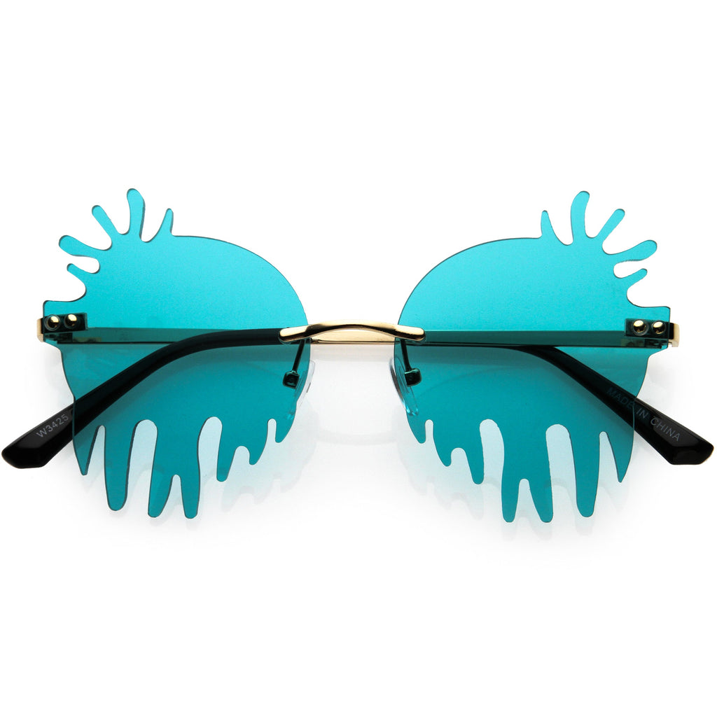 Rimless Splatter Melting Dripping Effect Color Tinted Lens Round Drip Sunglasses D077