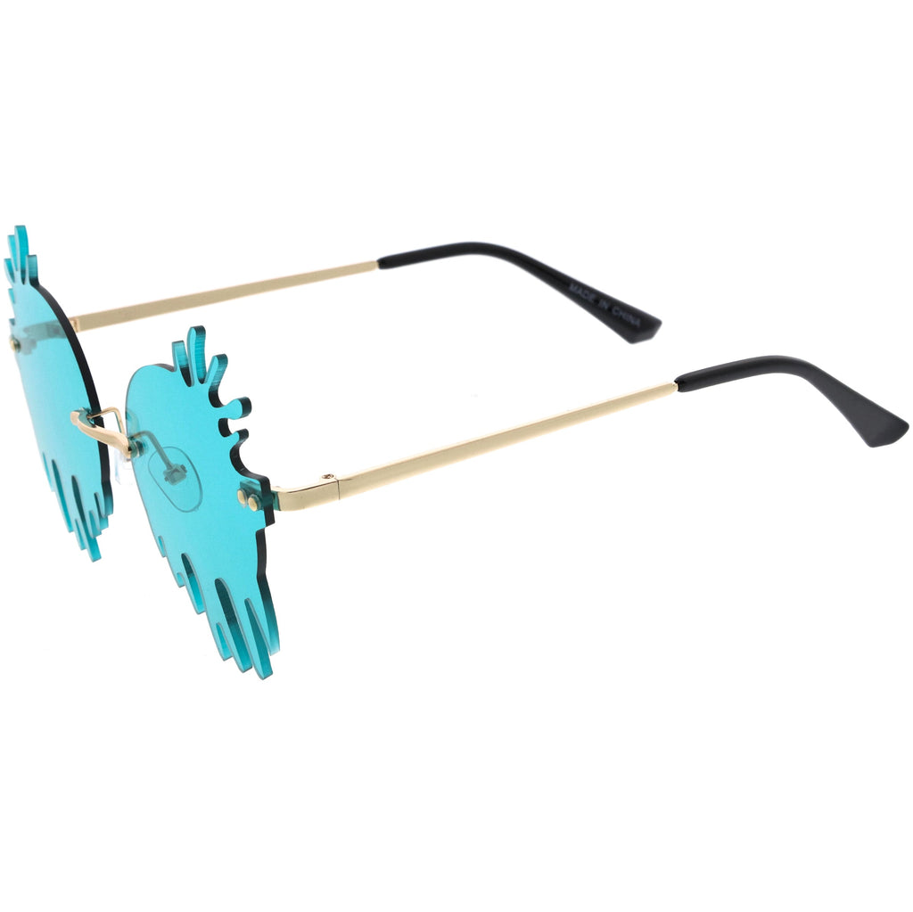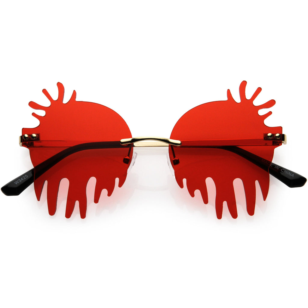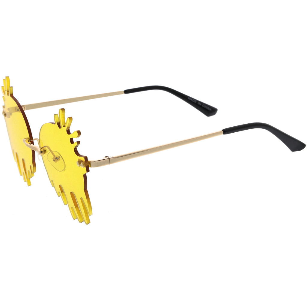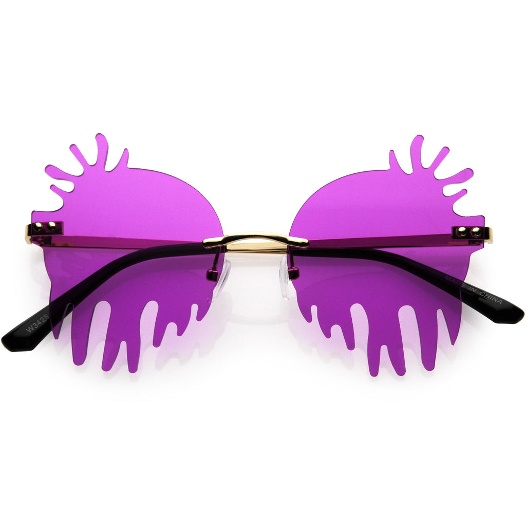 Rimless Splatter Melting Dripping Effect Color Tinted Lens Round Drip Sunglasses D077