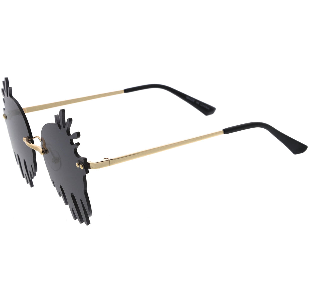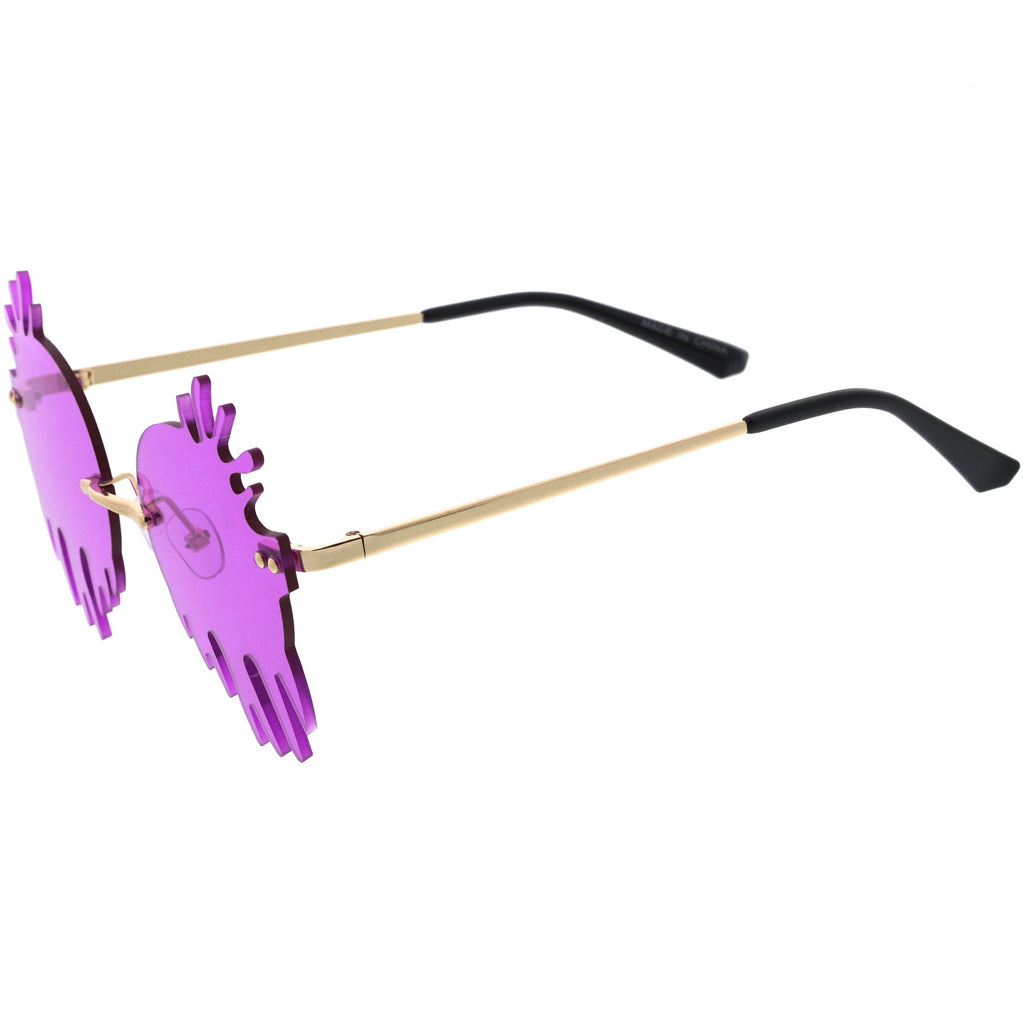 Drop into the latest high fashion trend this season with our round paint drop cutout spatter effect drip sunglasses. With a sleek metal frame and a full rimless style, these tinted sunnies are specially crafted with an round silhouette. Made with metal hinges and 100% UV protected lenses. - Lens Width: 55mm